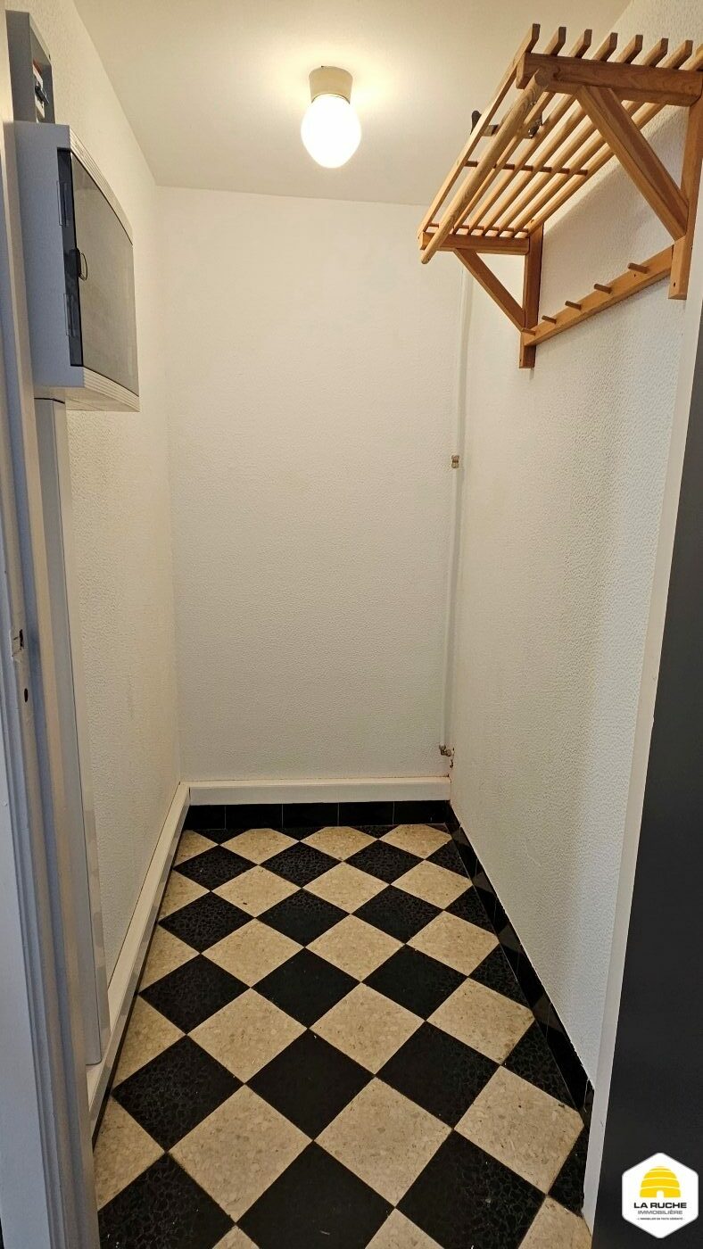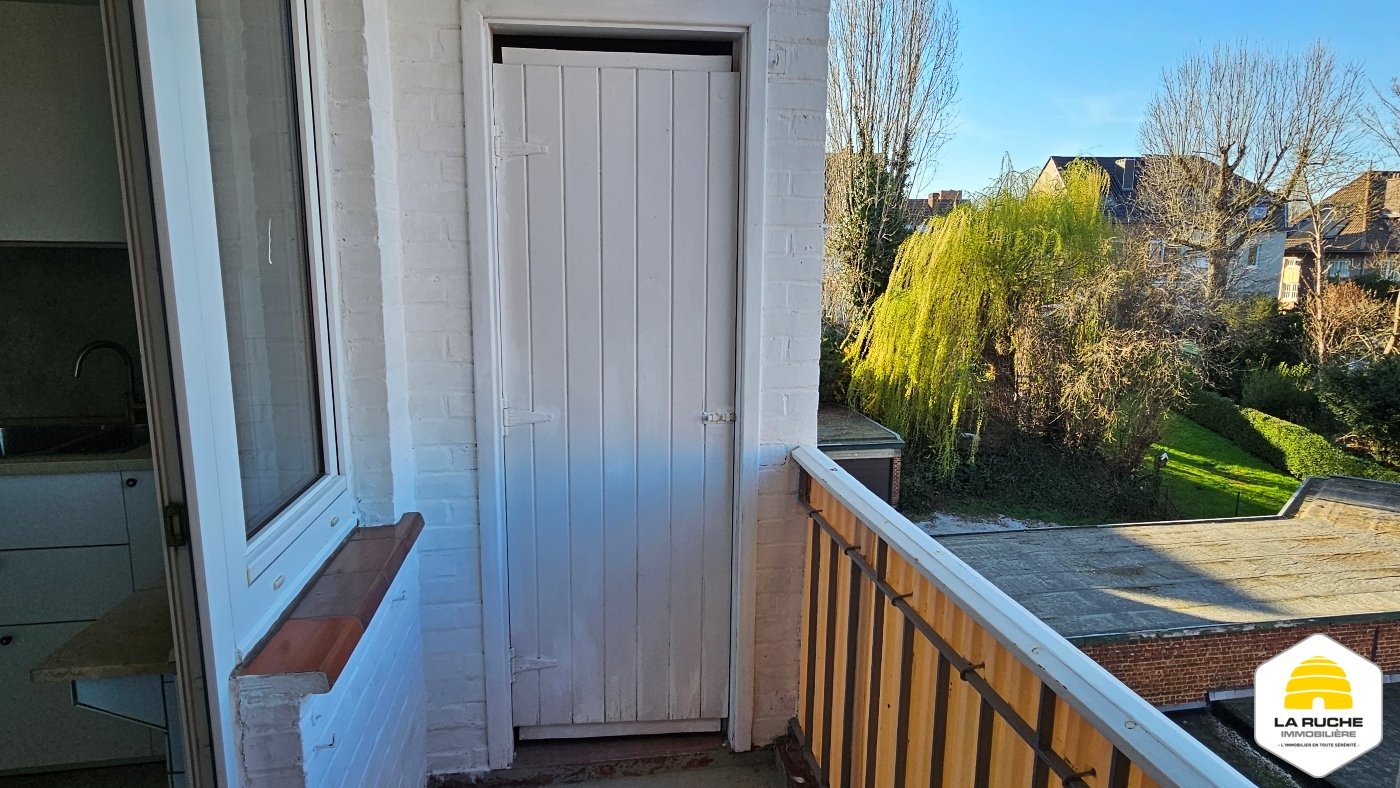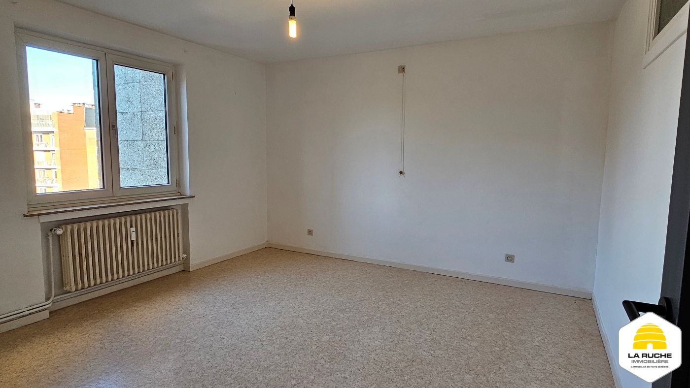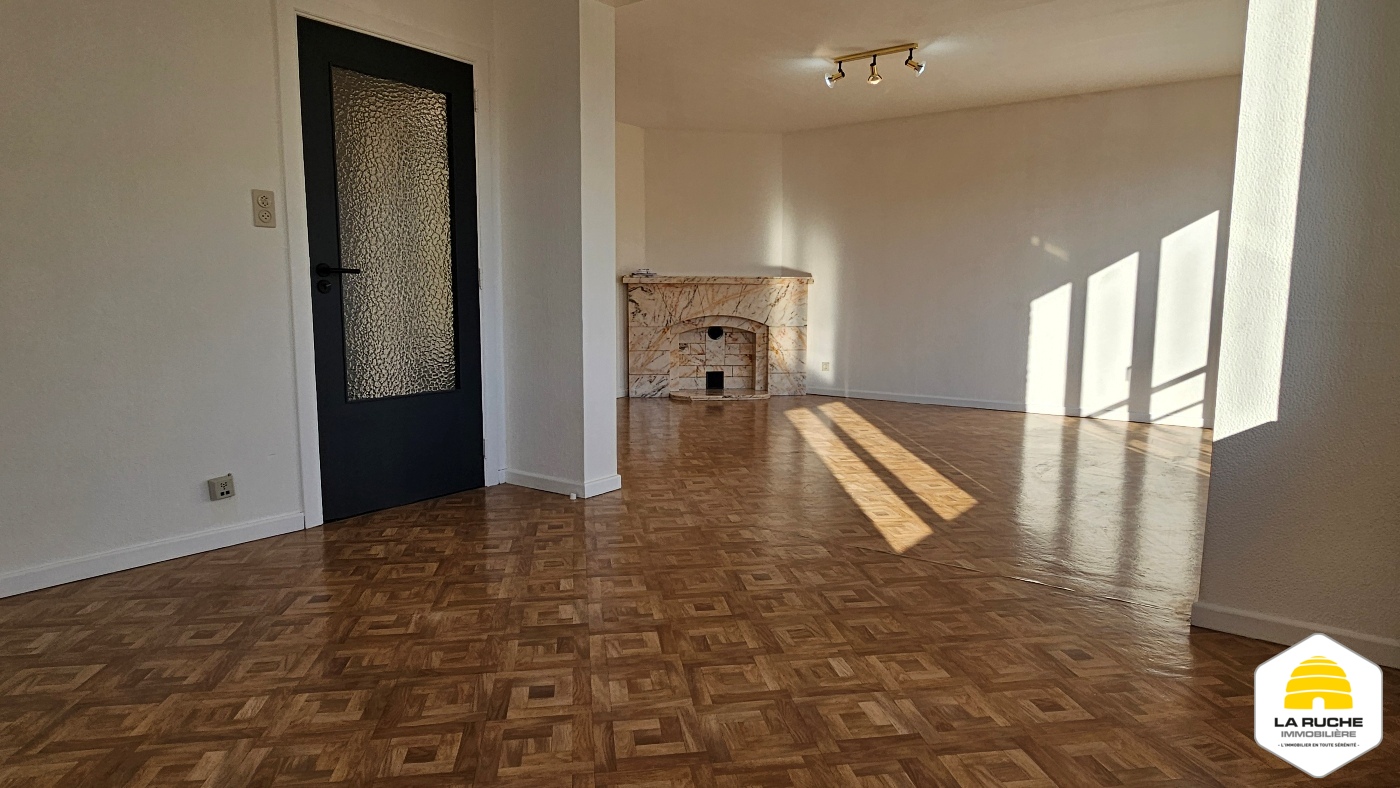 Hall d’entrée (6m²), séjour lumineux (32m²), nouvelle cuisine équipée avec accès balcon (10m²/four, taques, hotte, lave-vaisselle, frigo, arrivée et évacuation pour machine à laver), balcon (2,5m²/local rangement), chambre (15,5m²), nouvelle SDD (5,5m²/WC, douche italienne, meuble simple évier), débarras (1,4m²).