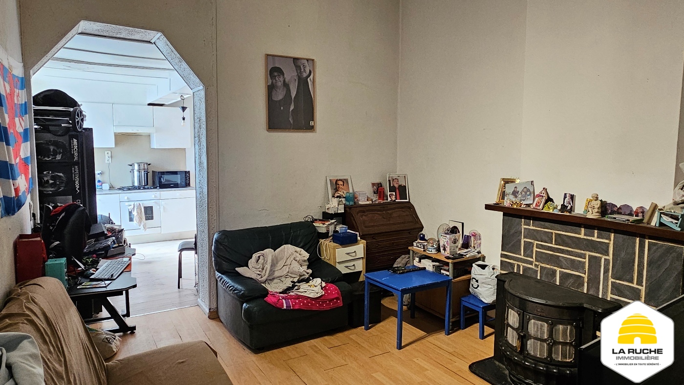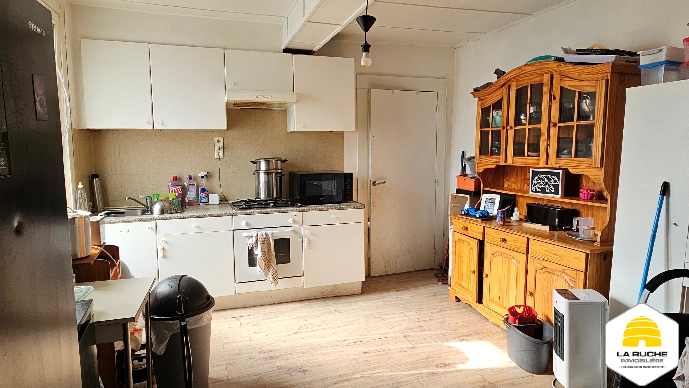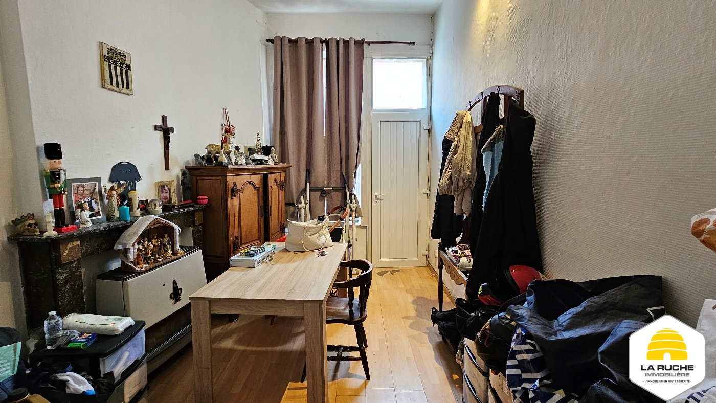 Maison 2 façades à rafraîchir de 71m² nets habitables (hors cave et hors grenier) comprenant 2 chambres. Il n’y a pas de cour ni de jardin. Toiture refaite (2017) et châssis PVC (2006). Maison actuellement louée (bail d’un an du 01-01-2023 reconduit tacitement, 520€ de loyer, 1040€ de garantie locative, état des lieux réalisé).