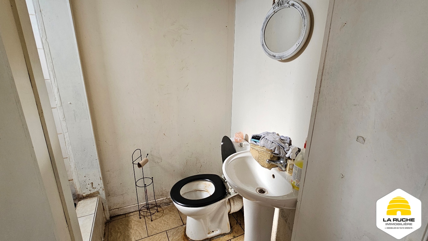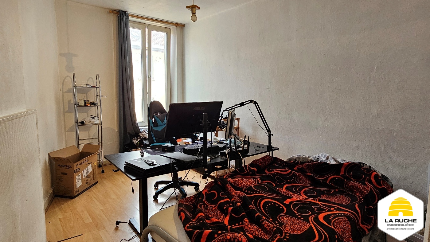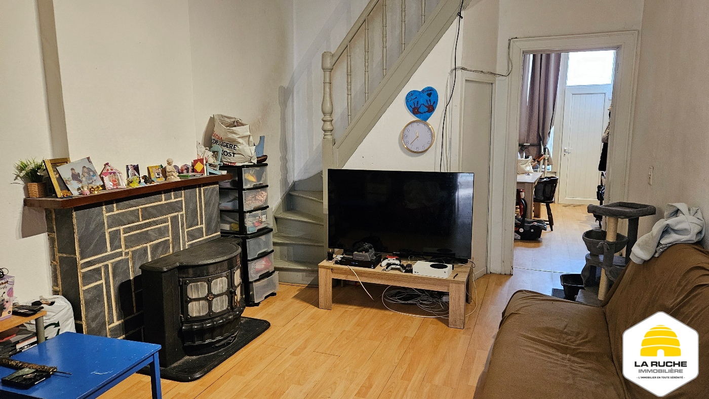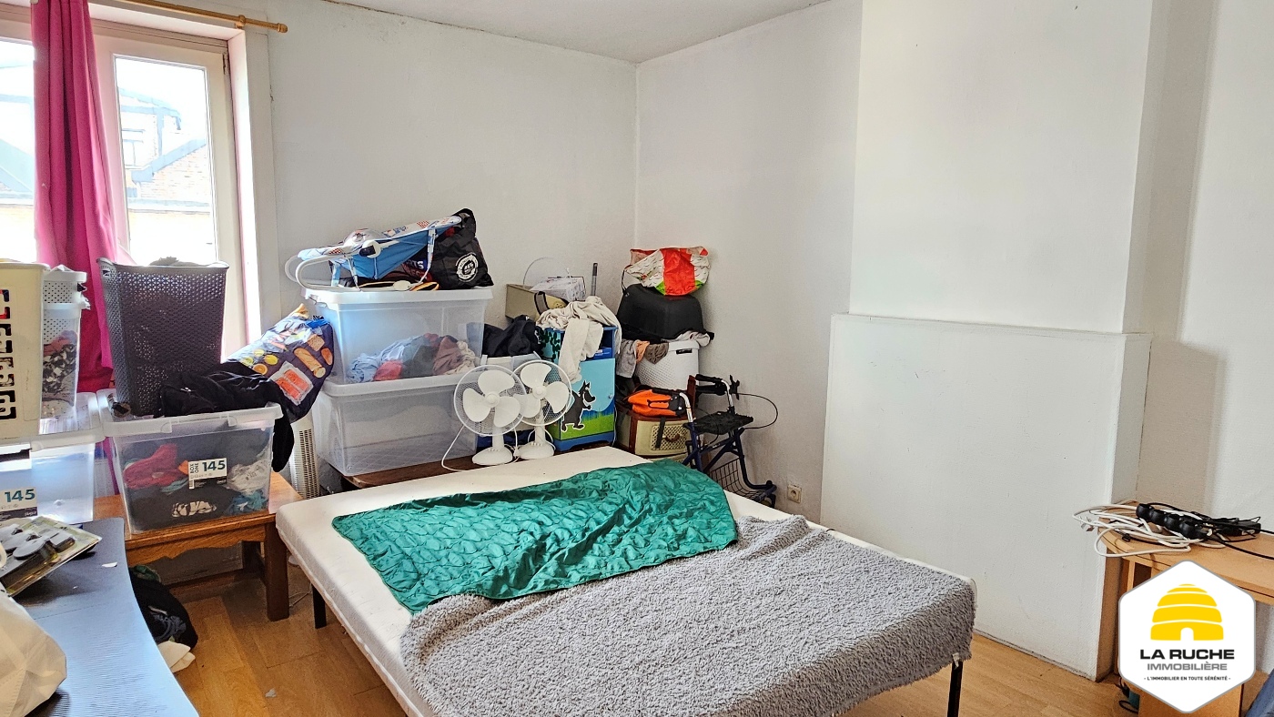 Maison 2 façades à rafraîchir de 71m² nets habitables (hors cave et hors grenier) comprenant 2 chambres. Il n’y a pas de cour ni de jardin. Toiture refaite (2017) et châssis PVC (2006). Maison actuellement louée (bail d’un an du 01-01-2023 reconduit tacitement, 520€ de loyer, 1040€ de garantie locative, état des lieux réalisé).