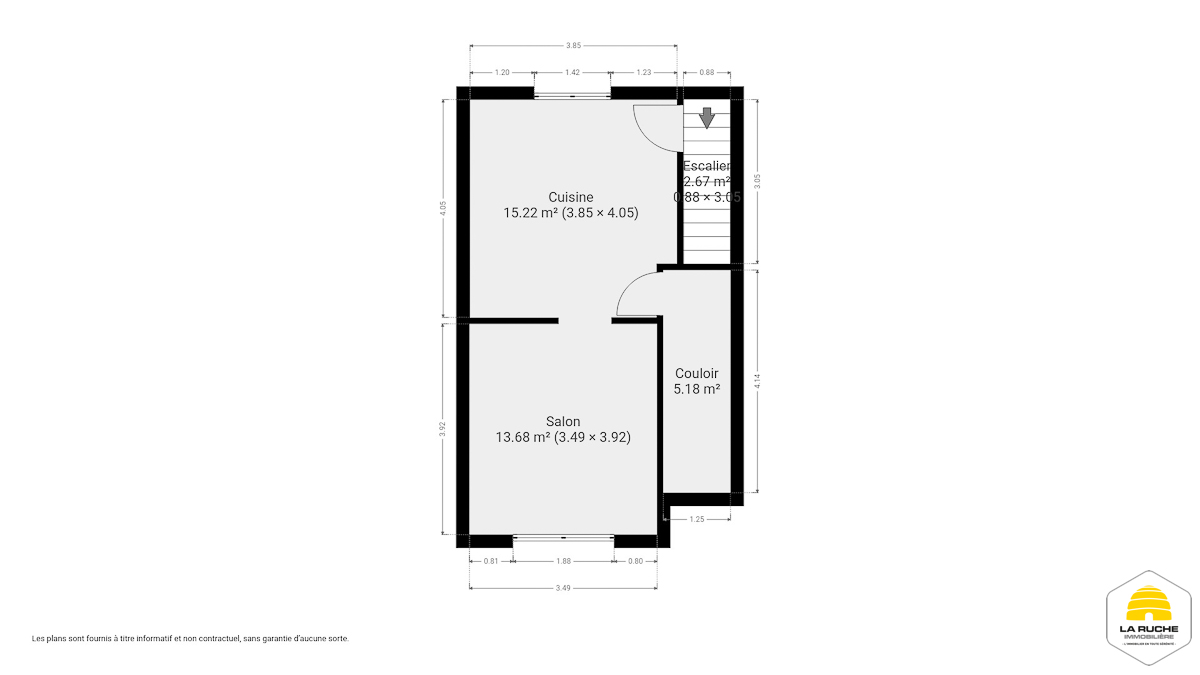 Au rez-de-chaussée : hall d’entrée, salon, salle à manger, cuisine