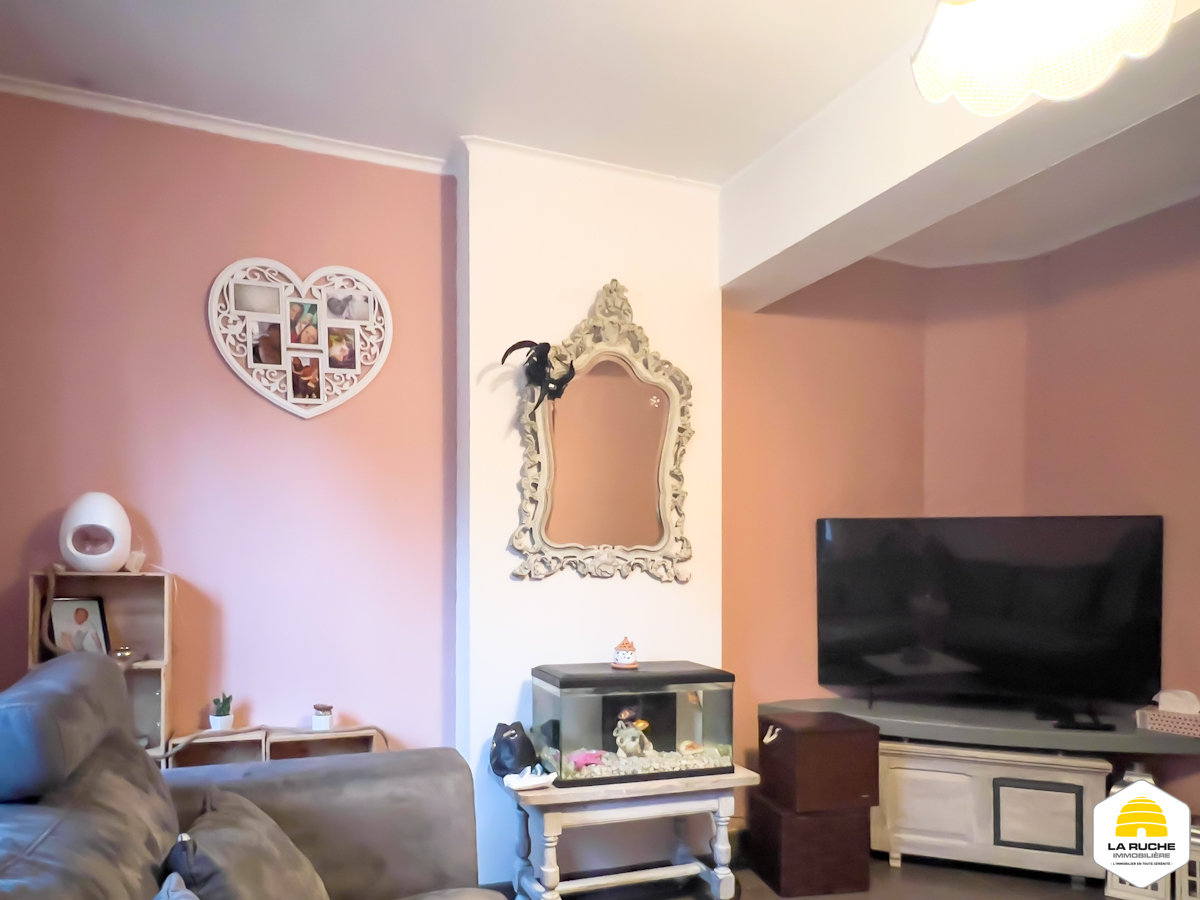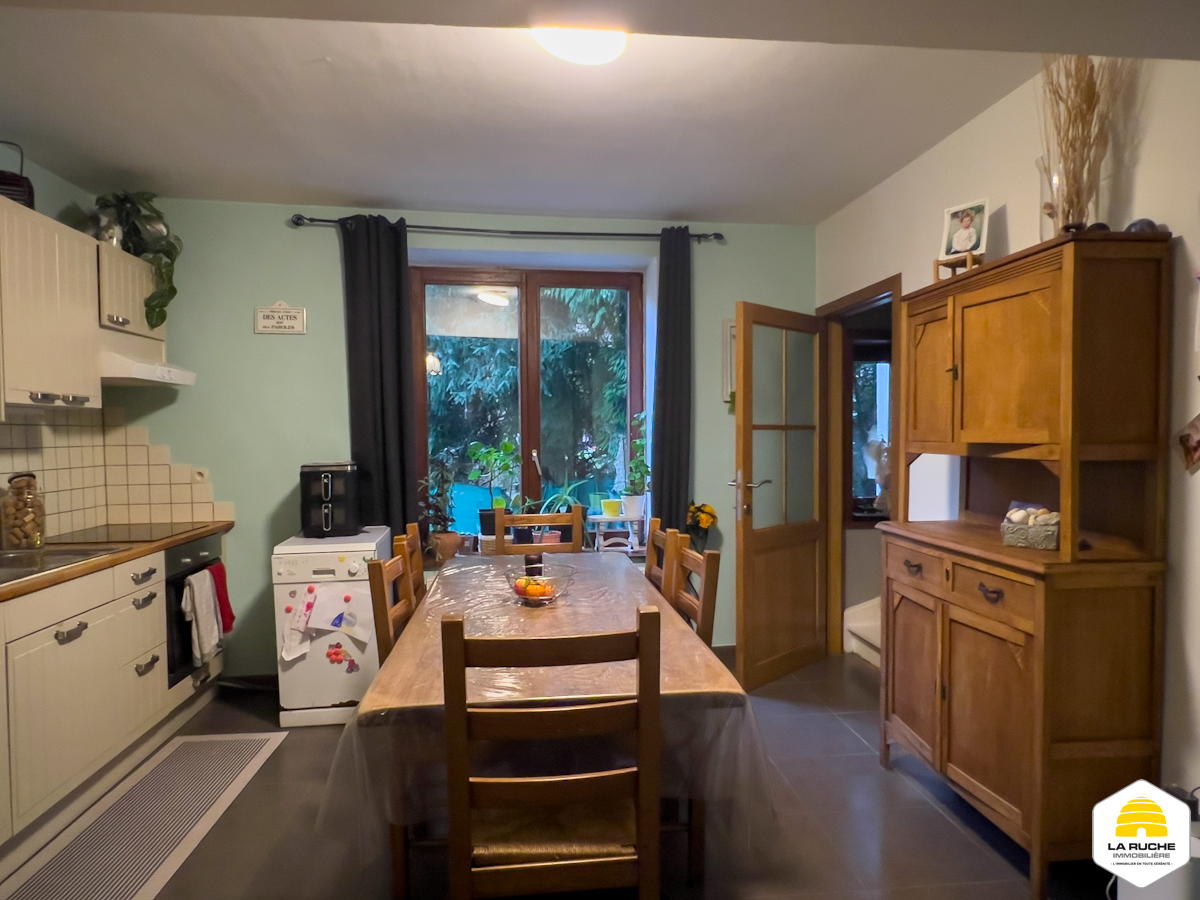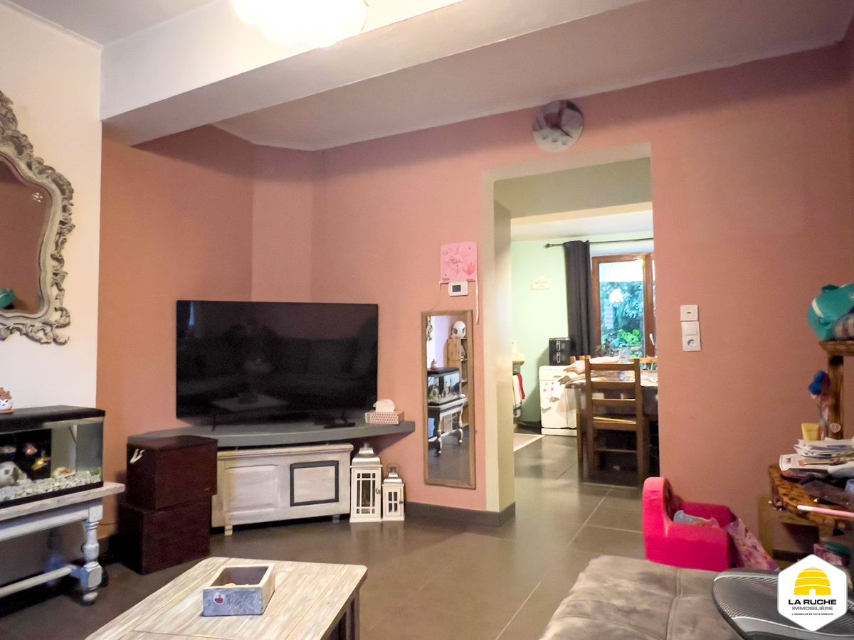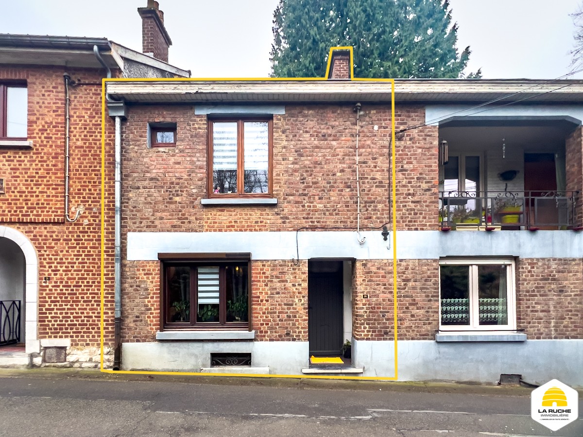 Maison 2 façades d’environ 75 m² nets habitables, implantée sur une parcelle de 88 ca orientée sud-ouest, comprenant 2 chambres, un grenier aménageable accessible par escalier, des caves et une terrasse, raccordée aux égouts.