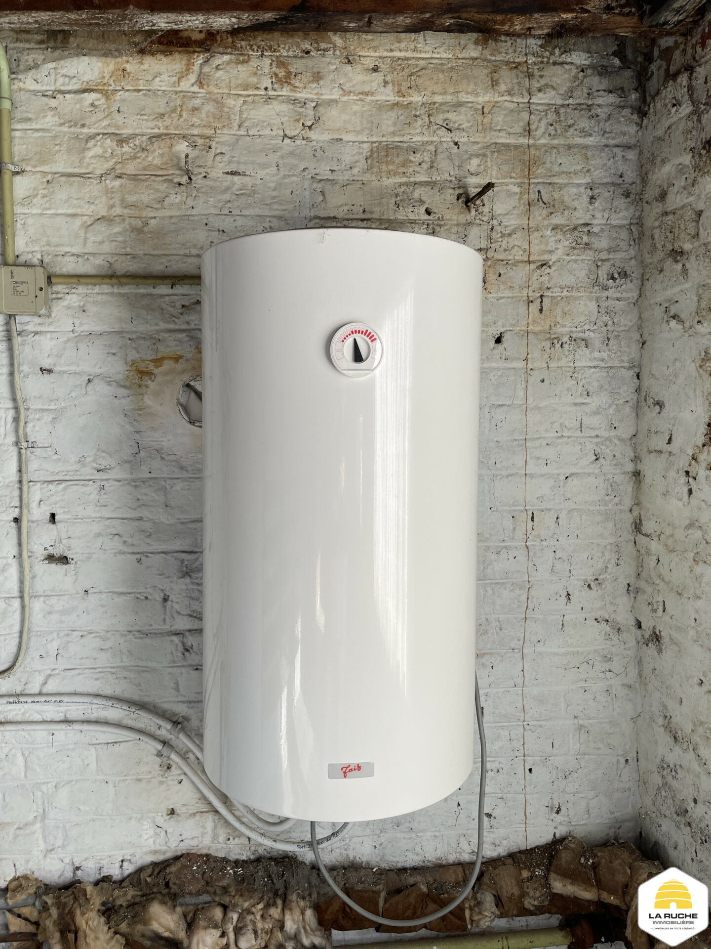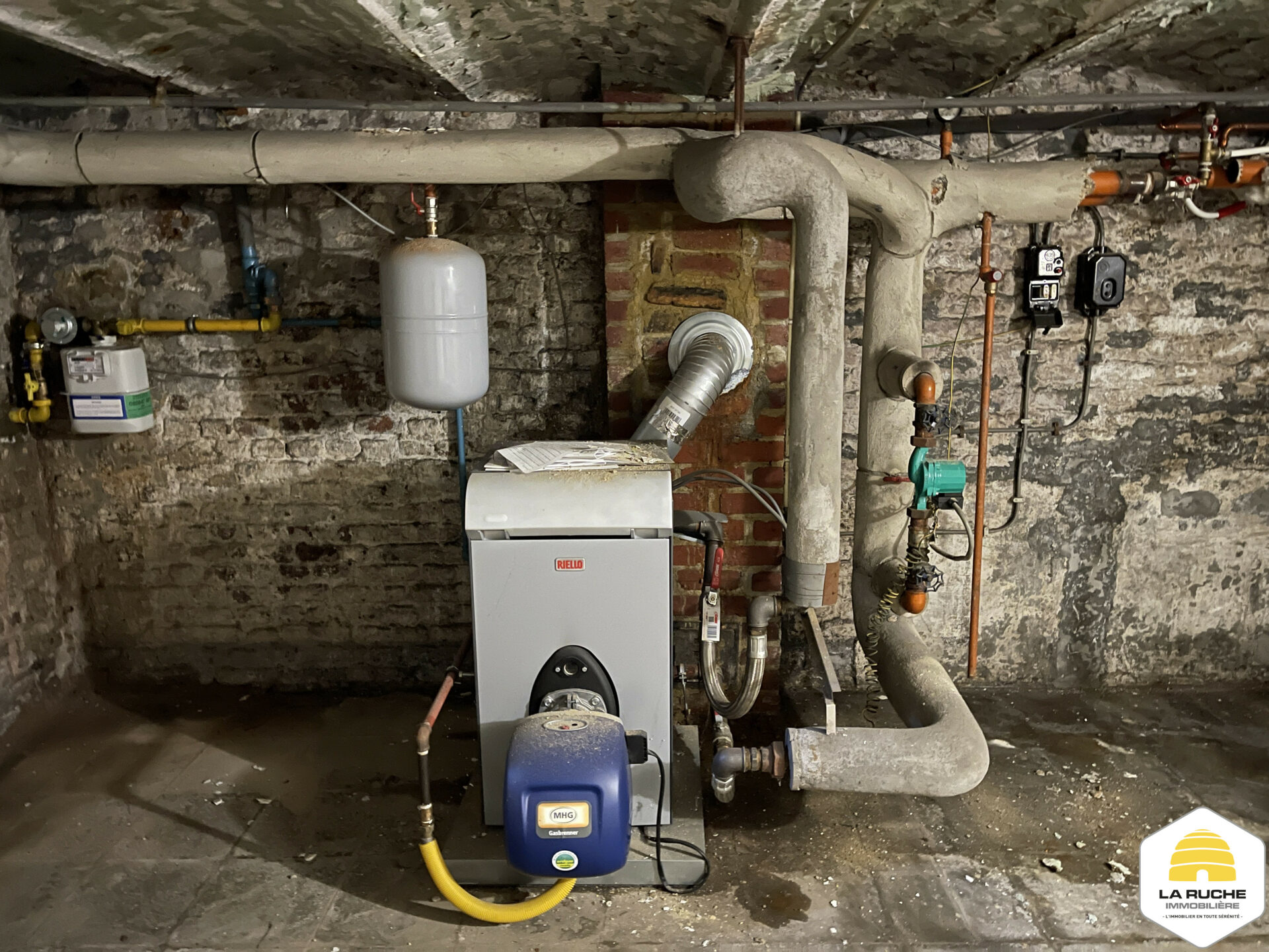 Equipements : volets électriques et manuels, citerne d’eau de pluie de +/- 15.000L, chaudière au gaz (gaz de ville), électricité à remettre en conformité.