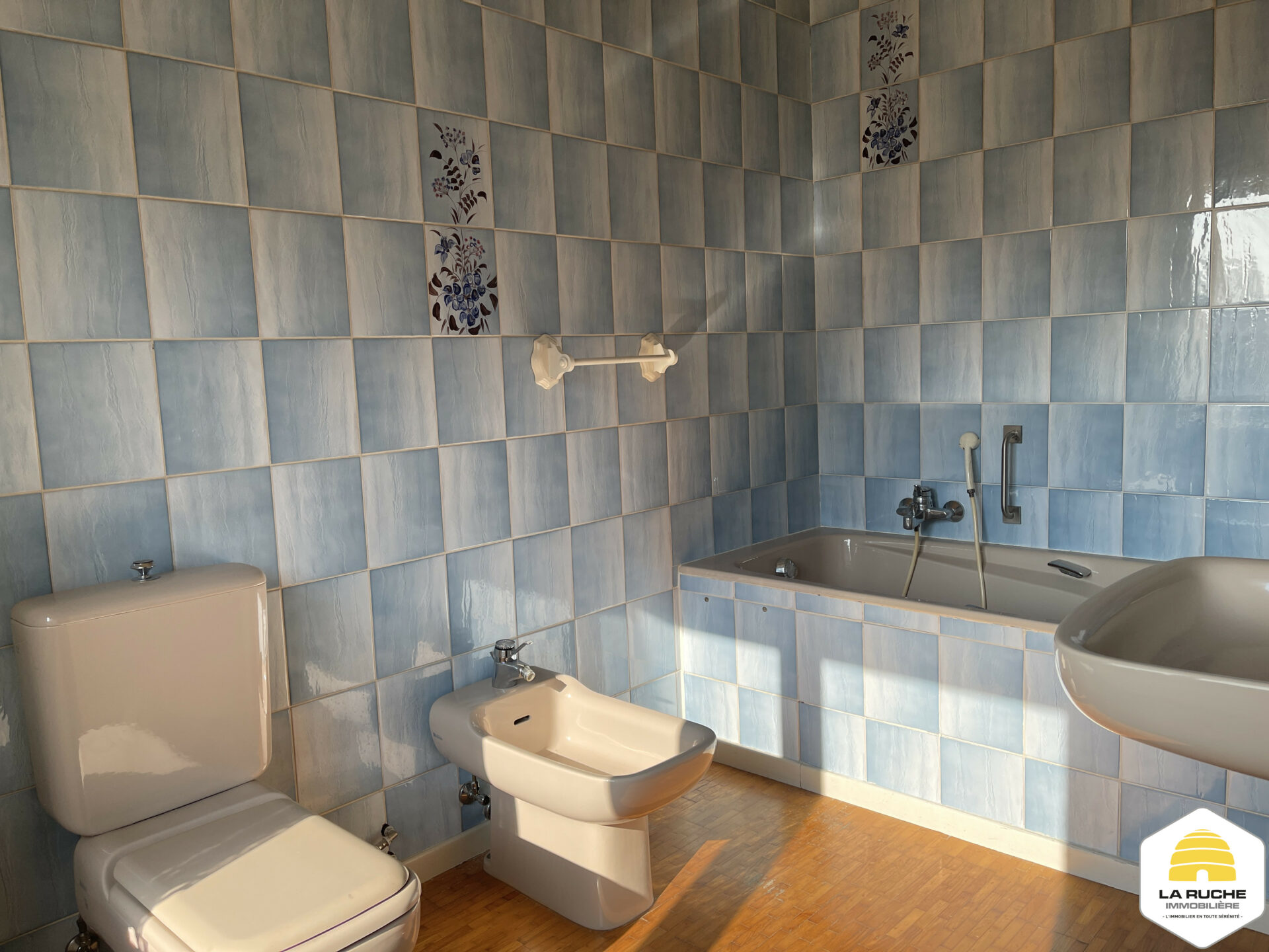 A l’étage : entre sol (3m²), salle de bains (9,3m²/équipements : WC classique, bidet, lavabo, baignoire), 3 chambres (18m²/14m²/13m²/deux chambres sont en enfilade/volet électrique dans la chambre arrière).