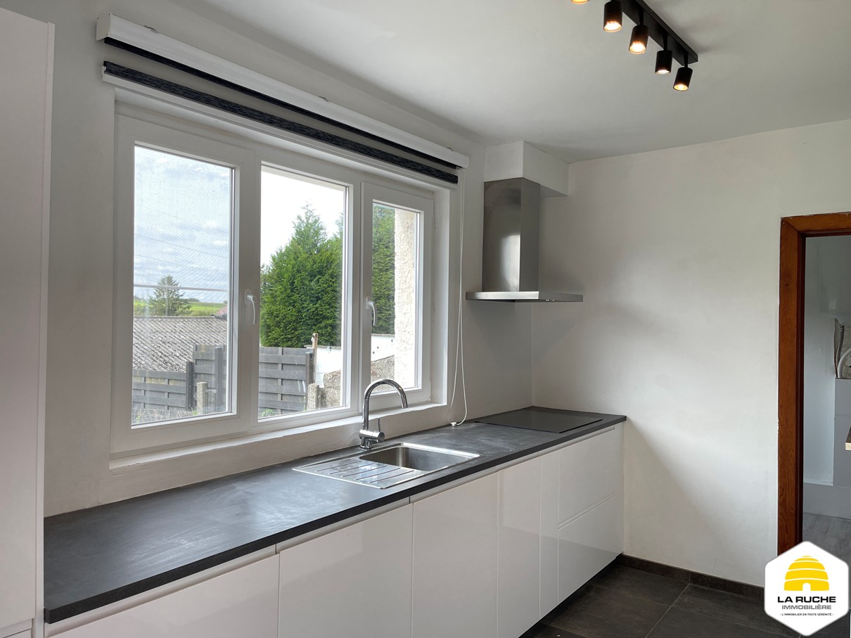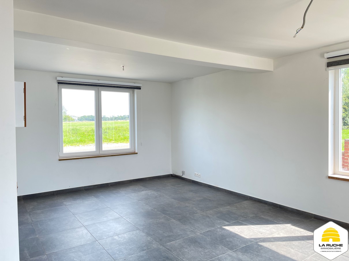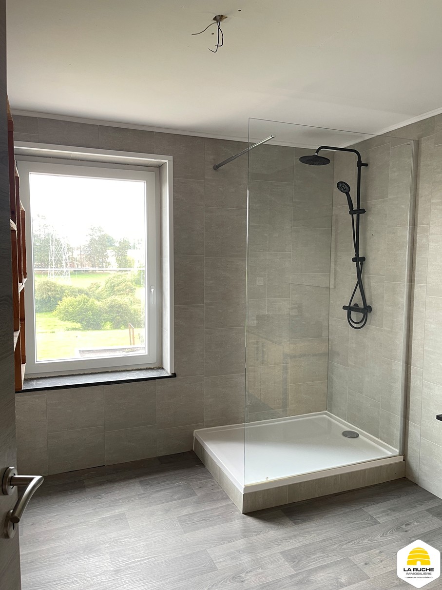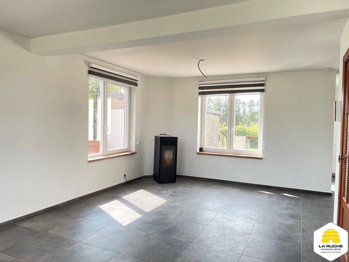 Composition : Hall d’entrée (4,85m²/porte d’entrée en PVC double vitrage récente), séjour/salle-à-manger (30,78m²/poêle à pellets), cuisine (15,55m²/équipements : taques à induction, hotte, four, lave-vaisselle, micro-onde, frigo), buanderie/WC (4,91m²/WC classique et lave-mains/boiler électrique Van Marcke d’une capacité de 200L).