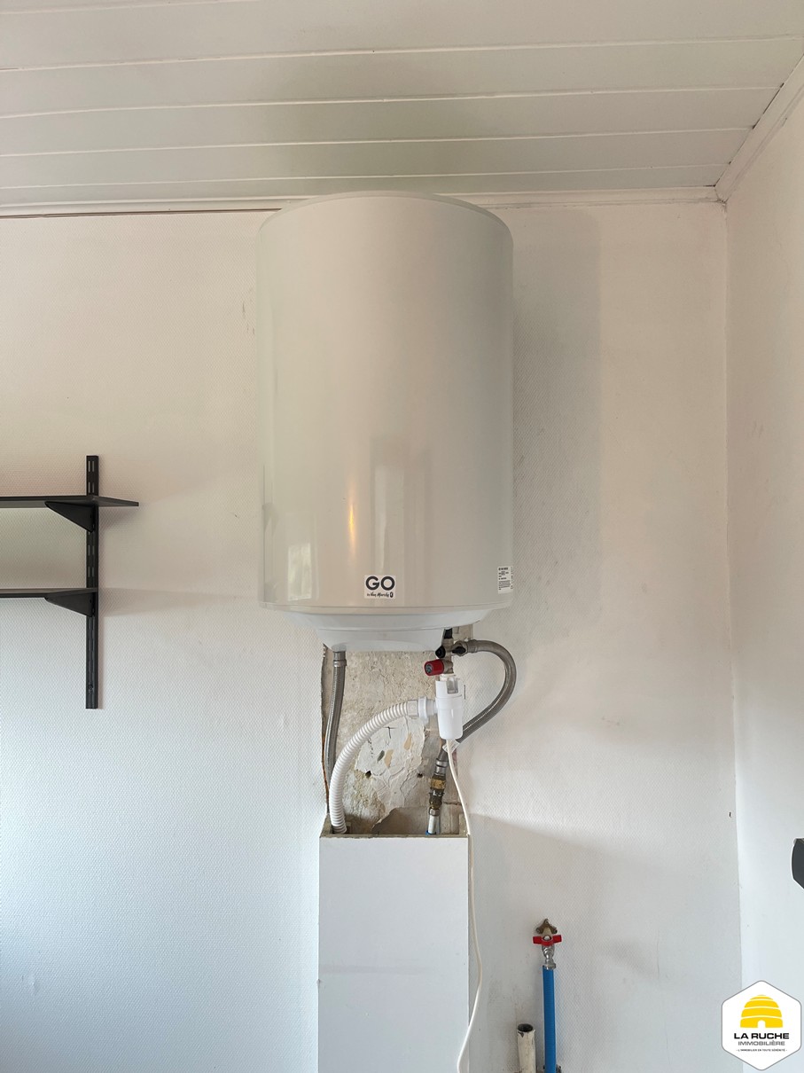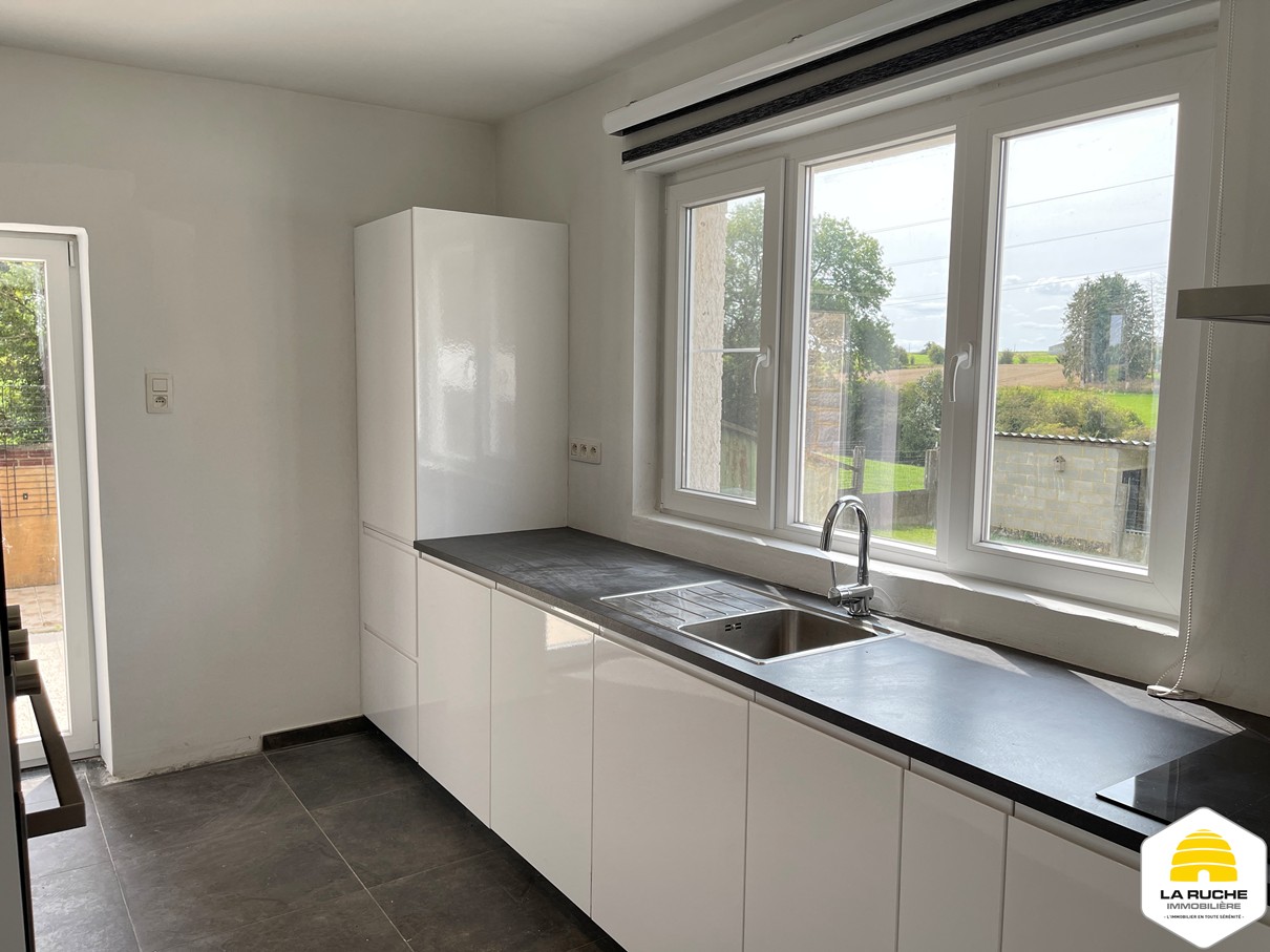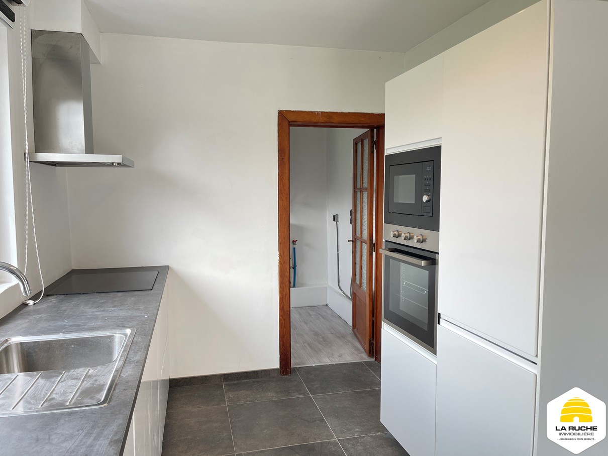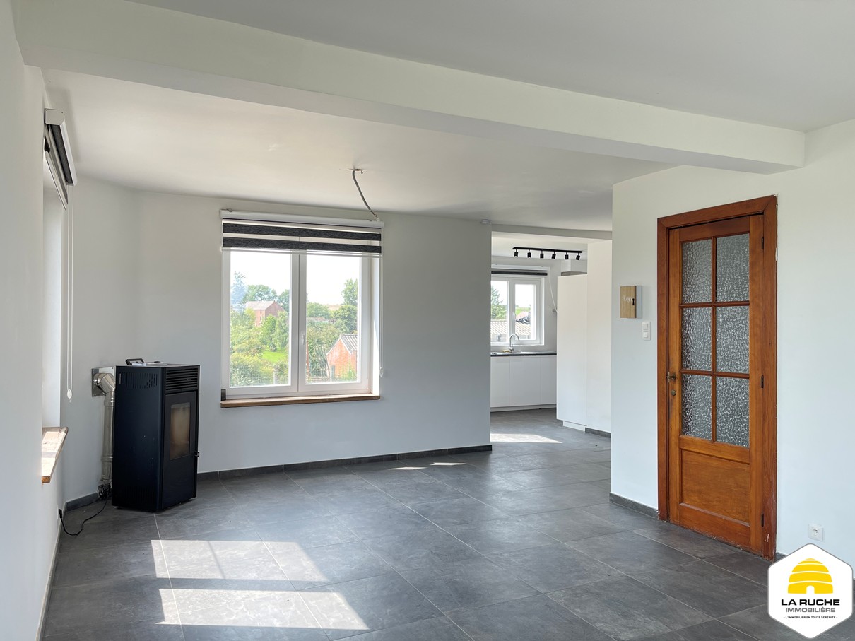 Composition : Hall d’entrée (4,85m²/porte d’entrée en PVC double vitrage récente), séjour/salle-à-manger (30,78m²/poêle à pellets), cuisine (15,55m²/équipements : taques à induction, hotte, four, lave-vaisselle, micro-onde, frigo), buanderie/WC (4,91m²/WC classique et lave-mains/boiler électrique Van Marcke d’une capacité de 200L).