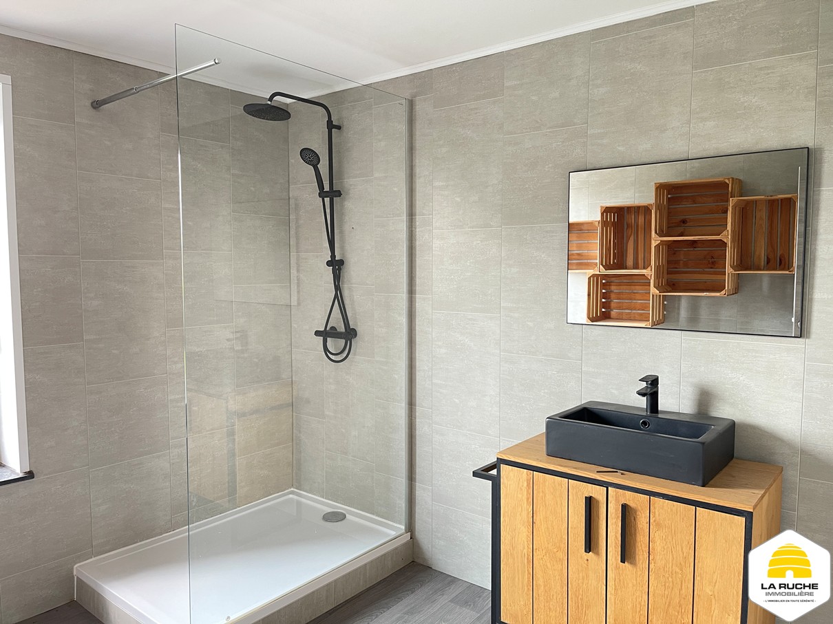Maison rénovée d’une superficie de 84m² (hors grenier, garage et cave), composée d’un séjour, cuisine ouverte, buanderie, deux chambres, salle de douche, terrasse, garage, jardin et cave. Electricité conforme (31/05/2047), toiture récente.