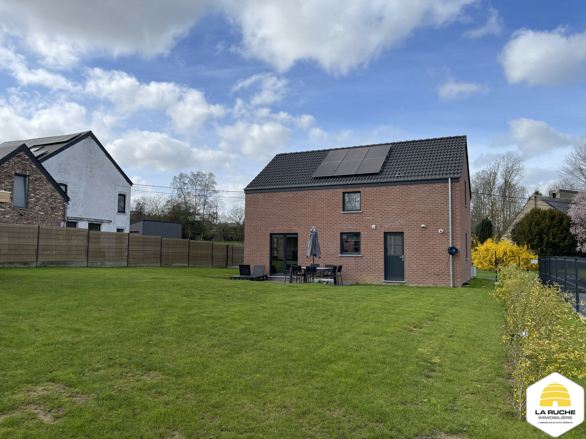 Maison unifamiliale (nouvelle construction), 120 m² nets habitables sur une parcelle de 7a32ca, en excellent état, comprenant 3 chambres, une terrasse, un jardin clôturé orienté Est et garage. Excellent PEB A.
