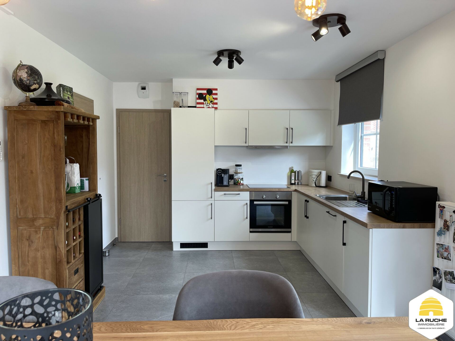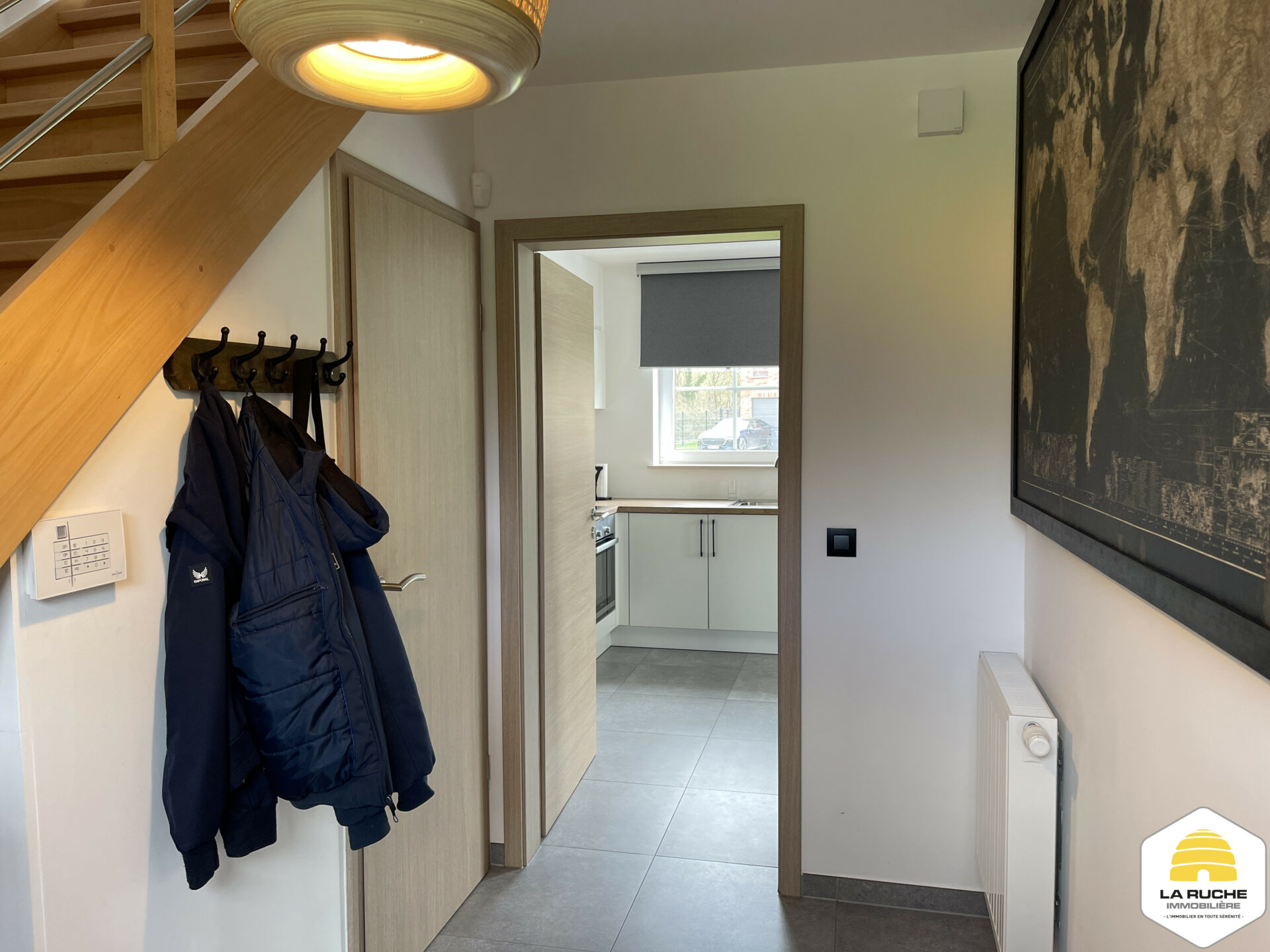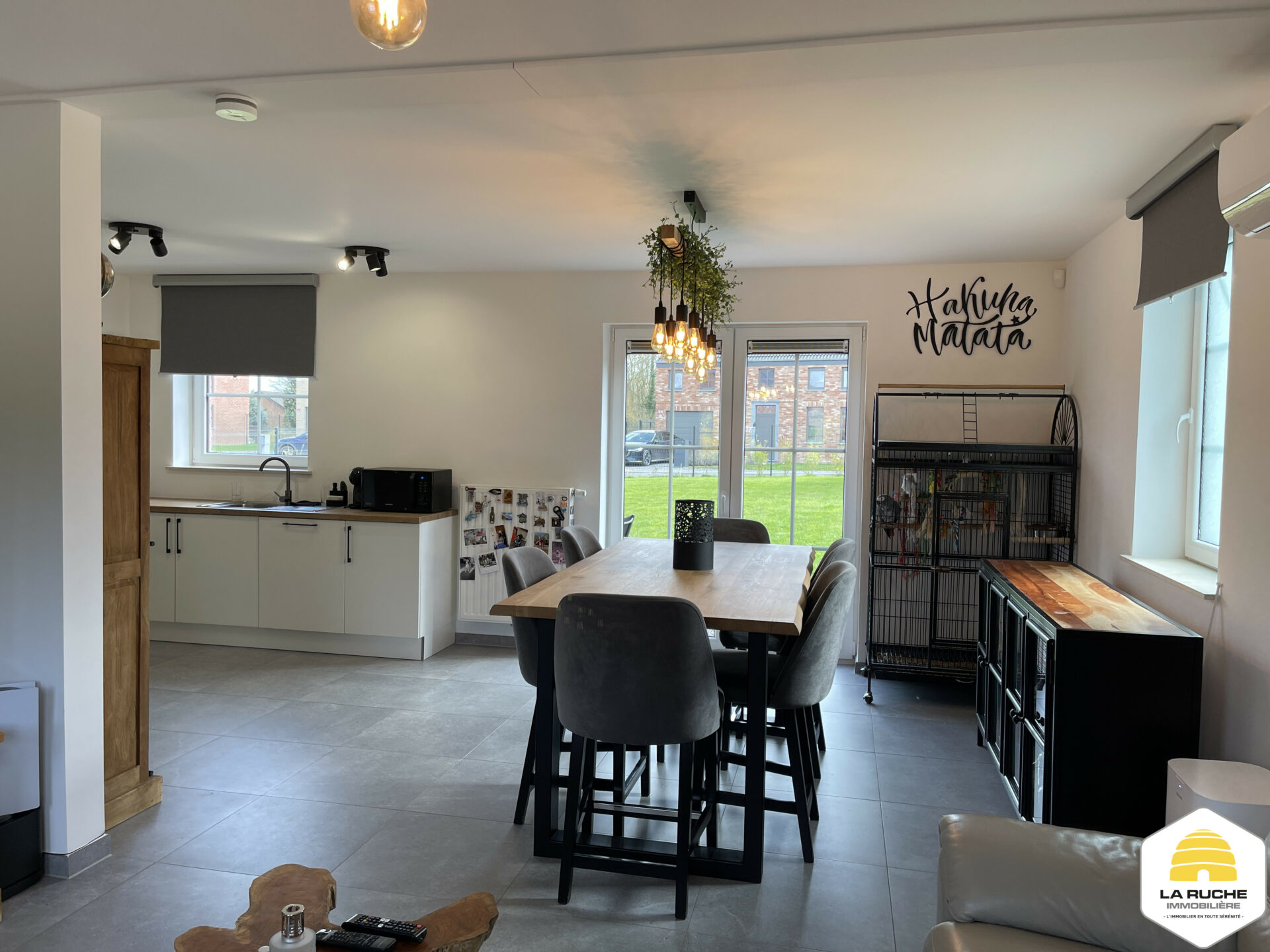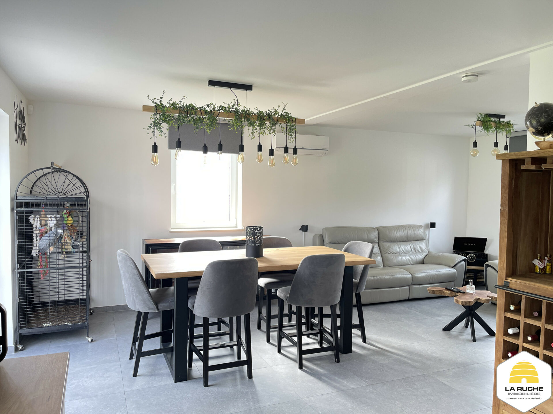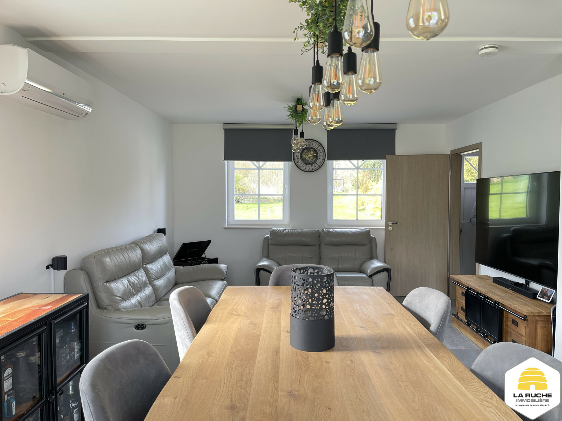 Châssis PVC DV, chauffage central gaz (chaudière à condensation VAILLANT), VMC simple flux, adoucisseur d’eau, cuisine équipée, porte de garage motorisée, climatisation chaud/froid dans le salon et dans les chambres, robot tondeuse, électricité conforme, PEB A, Certibeau.