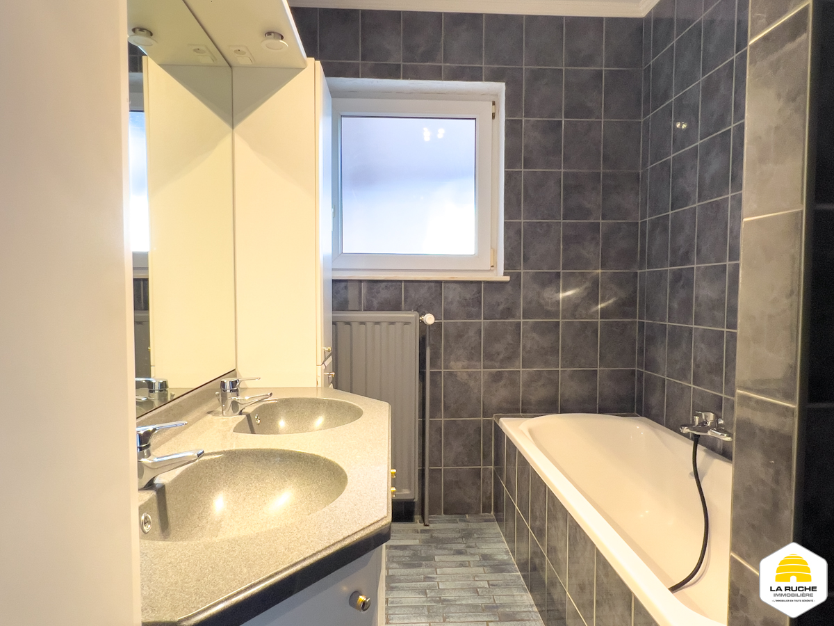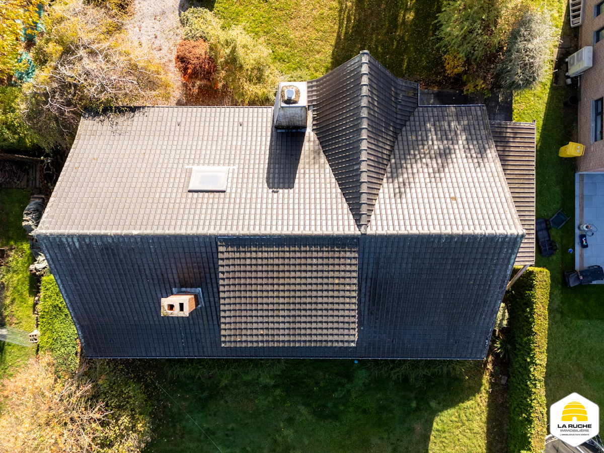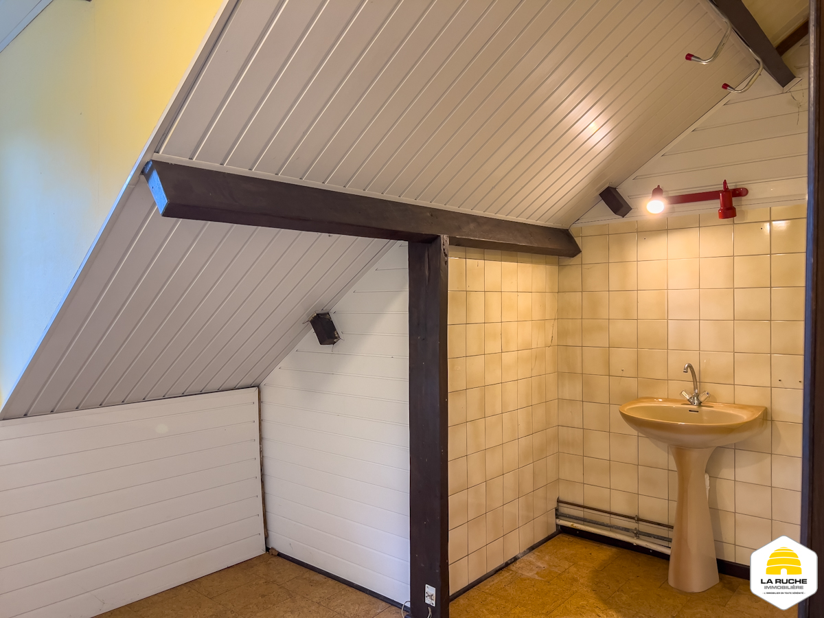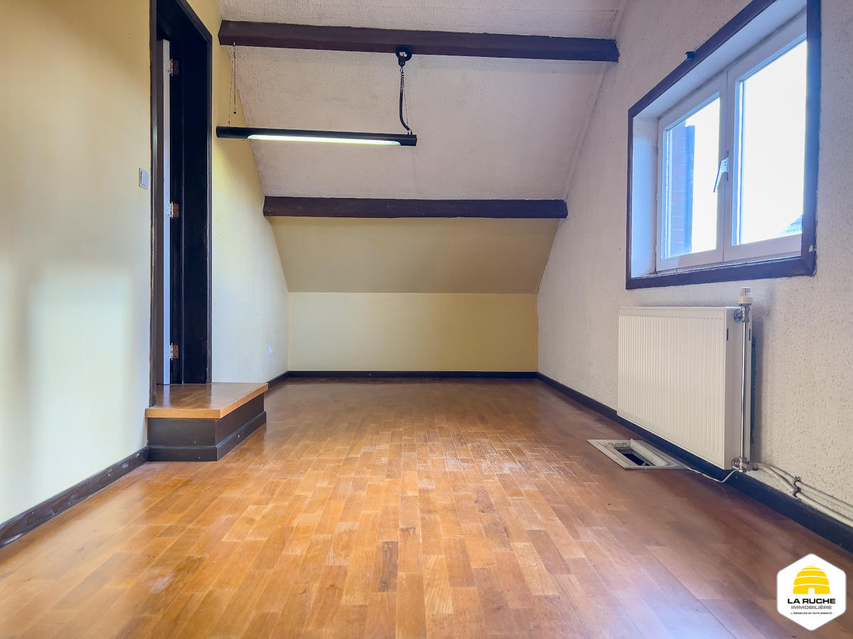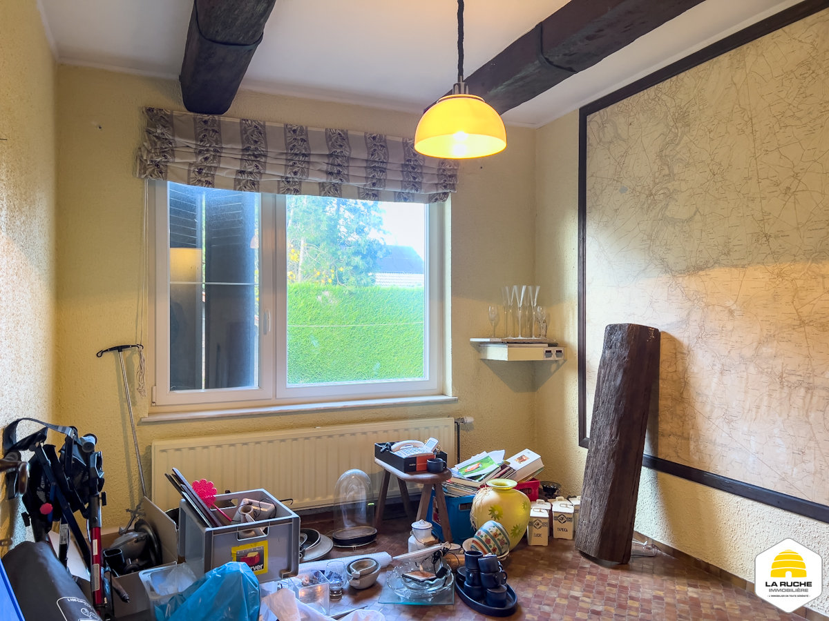 Chauffage central au mazout – radiateurs – châssis PVC double vitrage – installation électrique conforme (jusqu’en 2048) – possibilité d’aménagement du grenier.